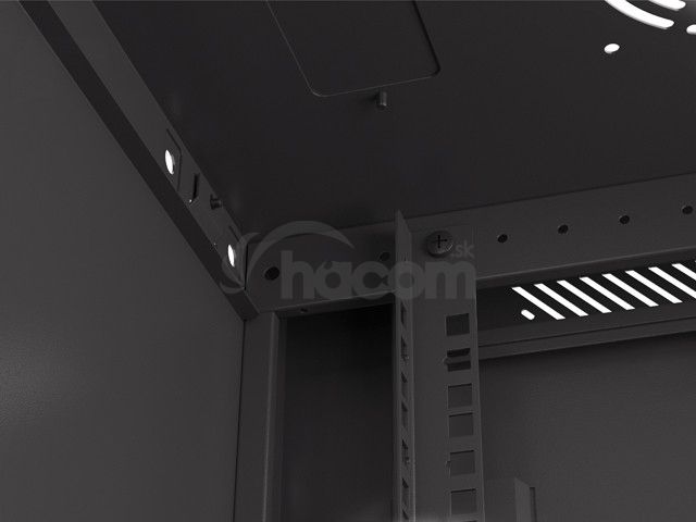 Pomocou dvoch vetracích otvorov v hornom paneli zaisťujeme vynikajúce prúdenie vzduchu a účinné chladenie. Užívateľom ponúkame ešte lepšiu kontrolu nad teplotou vo vnútri skrine, ktorá je zásadná pre udržanie optimálnych provozních podmienok zariadenia.