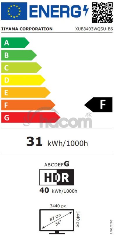 34" iiyamaXUB3493WQSU-B6: IPS, QHD, DP, HDMI, USB XUB3493WQSU-B6