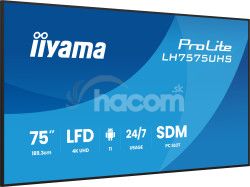 - 75" iiyama LH7575UHS-B2AG: IPS, 4K UHD, Android, 24/7 LH7575UHS-B2AG
