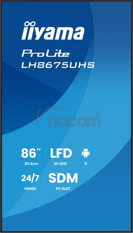 - 86" iiyama LH8675UHS-B2AG: IPS, 4K, 24/7, Android 11 LH8675UHS-B2AG
