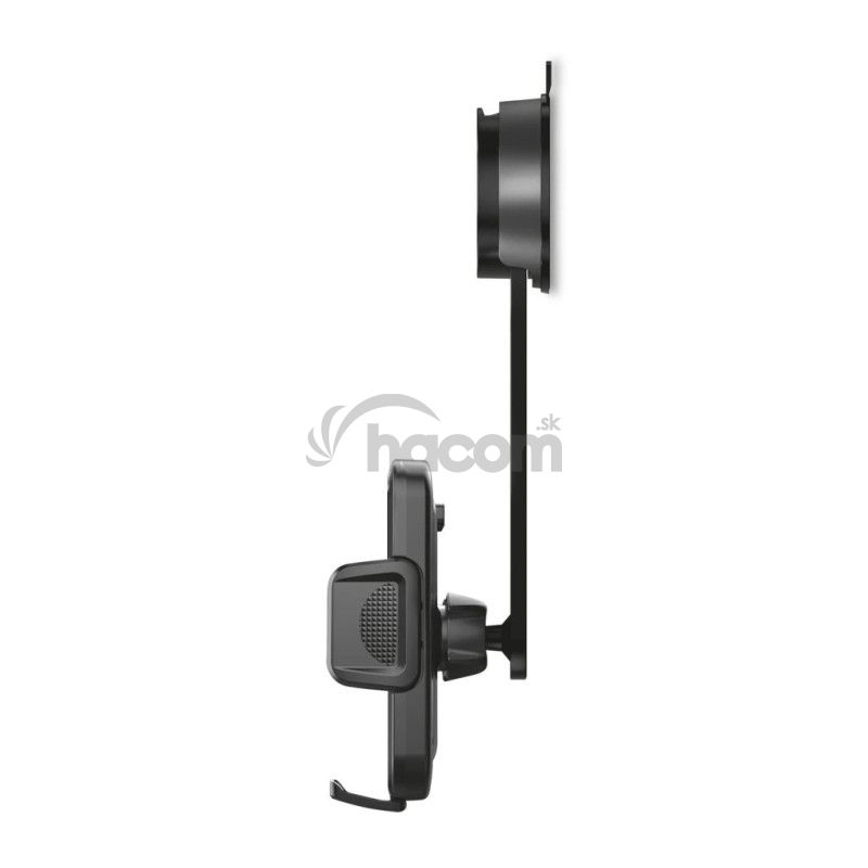 Držiak je vybavený bočnými čeľusťami – ich roztiahnutie zaisťuje tlačidlo na zadnej strane, zatvorenie vykonáte jednoducho pritlačením k telefónu. Výsuvná spodná opierka slúži na lepšie vystredenie zariadenia a je doplnená otvorom pre pohodlné pripojenie nabíjacieho kábla.