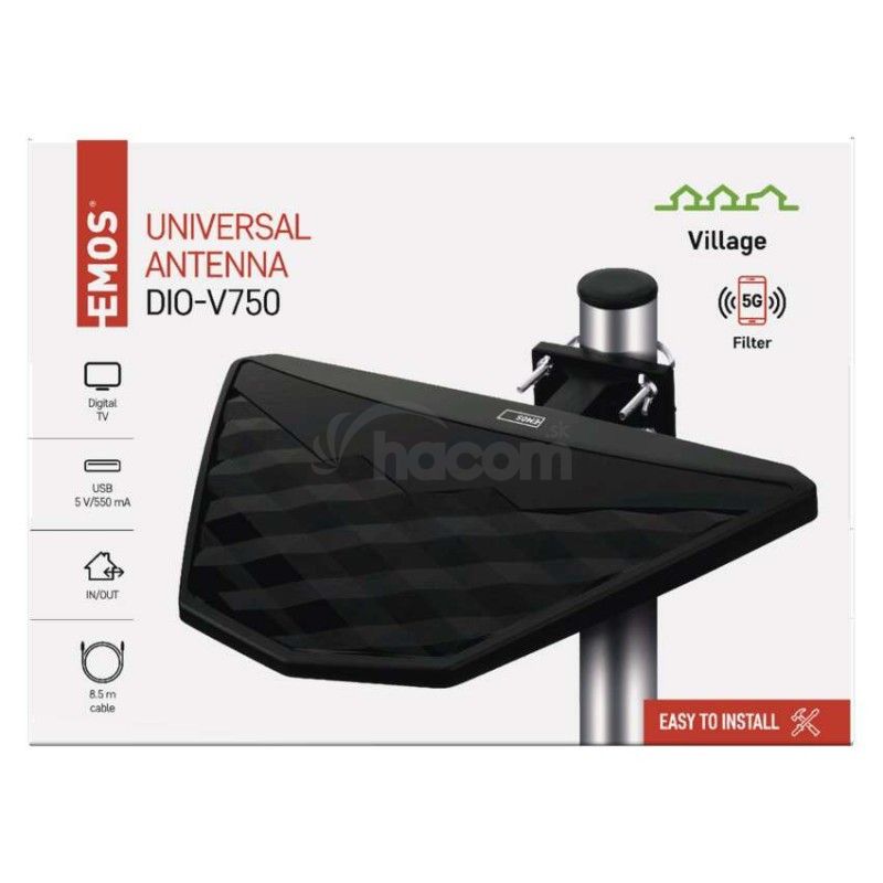 Anténa univerzálna VILLAGE DIO-V750, DVB-T2, filter LTE/4G/5G J0801
