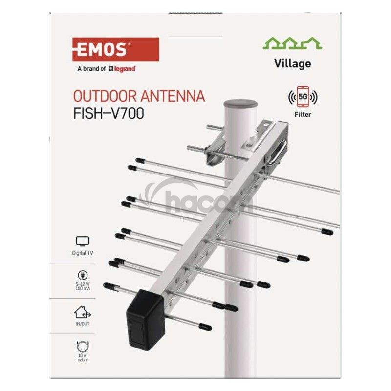 - Anténa univerzálna VILLAGE FISH–V700, DVB-T2, filter LTE/4G/5G J0806