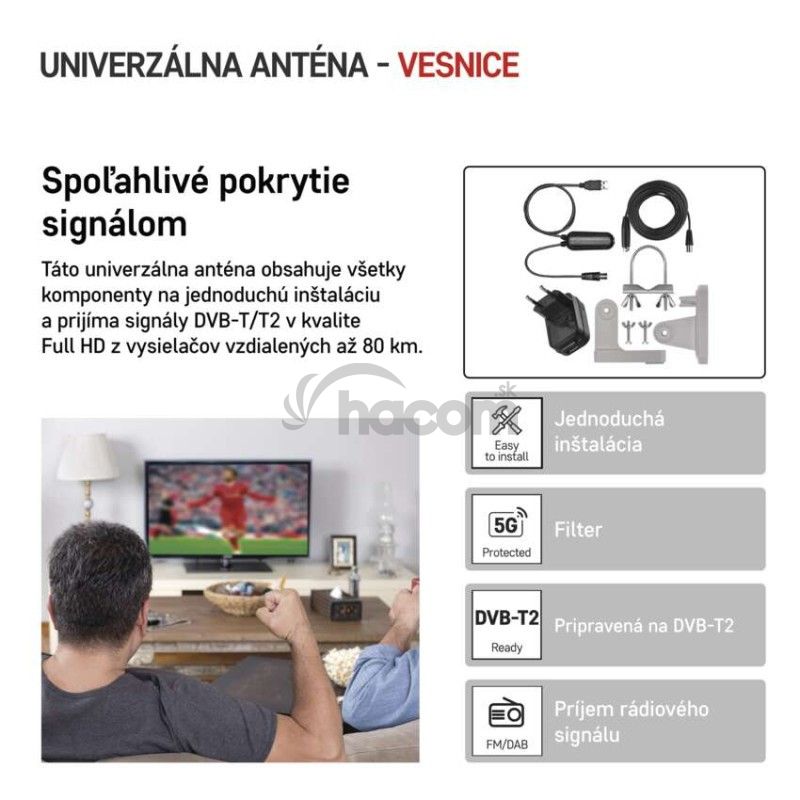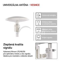 - Anténa univerzálna VILLAGE MOON–V900, DVB-T2, FM, DAB, filter LTE/4G/5G J0803