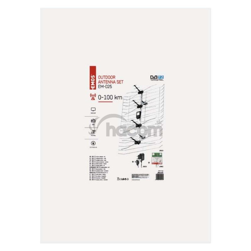 Anténa vonkajšia EM-025, 0–100 km, DVB-T2, DAB, filter LTE/4G J0665