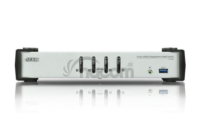 ATEN 4-port DisplayPort KVMP USB3.0, audioAten CS1914 4-port DisplayPort KVMP 3.0 prepínac umožní jednému užívateľovi zdieľať štyri pripojené počítače za pomoci jednej klávesnice, myši a monitora.