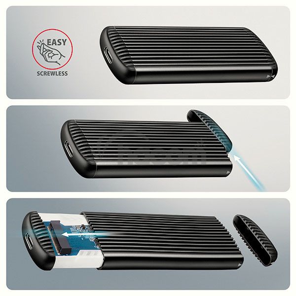 Bezšroubové otváranie uľahčuje montáž aj demontáž M.2 SSD disku. Vďaka tomu je výmena diskov rýchla a jednoduchá a výrazne urýchľuje prácu pri migrácii dať, testovaní, klonovaní či rozširovaní úložiska.