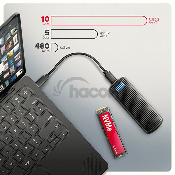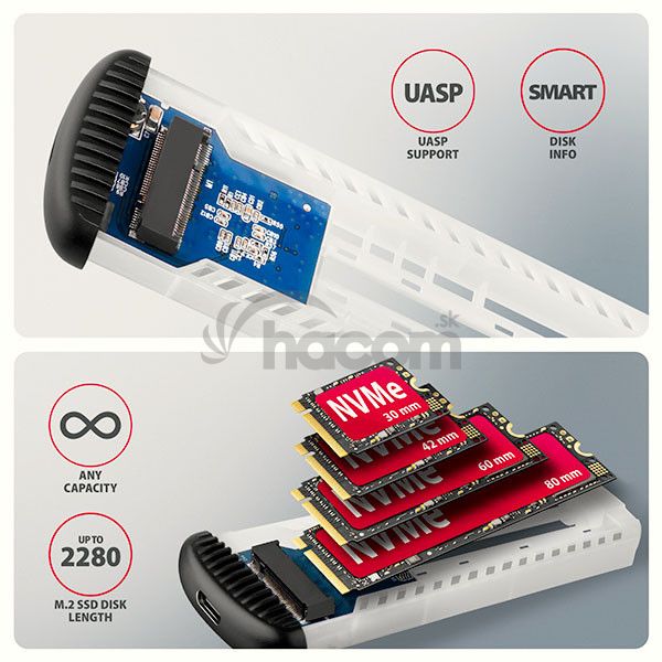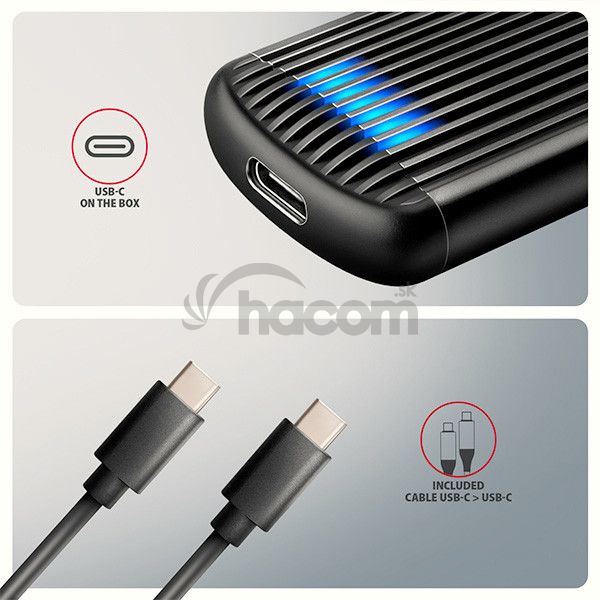 • USB-C 10Gbps externý box pre M.2 SSD,