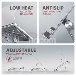 Elegantný dizajn tohto stojana nielen štýlovo doplní váš pracovný stôl, ale zároveň ponúka praktické funkcie. Podstavec aj kryt hubu sú vyrobené z robustných hliníkových odliatkov , ktoré zaisťujú pasívne chladenie a garantujú dlhú životnosť a spoľahlivosť stojana aj hubu. Výrezy v podstavci navyše optimalizujú odvod tepla z notebooku, čo prispieva k vyššiemu výkonu a dlhšej životnosti vášho zariadenia.