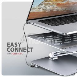AXAGON HMC-STND 7in1 Hub & Stand je jedinečný multifunkčný húb integrovaný do stojana pre notebook alebo tablet. Tento húb rozšíri Váš notebook alebo tablet o ďalších šesť portov . Váš notebook pripojíte k hubu cez USB-C <-> USB-C kábel dlhý 60 cm. Okamžite tak máte k dispozícii pripojenie pre monitor , tri USB zariadenia , konektor RJ-45 pre Gigabitovú ethernet sieť a napájanie notebooku pomocou technológie Power Delivery . Stojan s dvoma kĺbmi zlepšuje ergonómiu a pohodlie pri práci a je vhodný pre zariadenia od 10" do 16" . Je ideálna ako dokovacia stanica 7v1 pre Windows notebooky aj Apple MacBook Air alebo MacBook Pro .Tri USB-A 5Gbps výstupy umožňujú pripojenie externých diskov (až 2 súčasne), flash disku, myši, tlačiarne a ďalšieho USB príslušenstva. USB porty taktiež nabíja mobilné telefóny a tablety výkonom až 7.5W. Gigabitová sieťová karta rozšíri počítač o rýchle a stabilné sieťové pripojenie, doplní chýbajúci sieťový RJ-45 Ethernet konektor, alebo pridá ďalšiu sieťovú kartu.