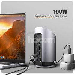 Hliníkové telo nielen skvele vyzerá, ale zabezpečí aj mechanickú odolnosť a pasívne chladenie . Vďaka gumovej podložke na podstavci zostane stanica pevne na svojom mieste. USB-C hub je ideálnym doplnkom pre notebooky bez USB-A konektorov a video výstupu . Vďaka funkciám Plug & Play a Hot Plug je samotné zapojenie hubu veľmi jednoduché bez zložitej inštalácie, a taktiež je možné jednoducho pripájať a odpájať periférie za behu počítača.