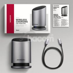 - AXAGON HMC-WL9, USB 10Gbps húb s Qi, 3x USB-A, USB-C, HDMI a DP 4k/60Hz, RJ-45, PD 100W, kábel 60cm HMC-WL9