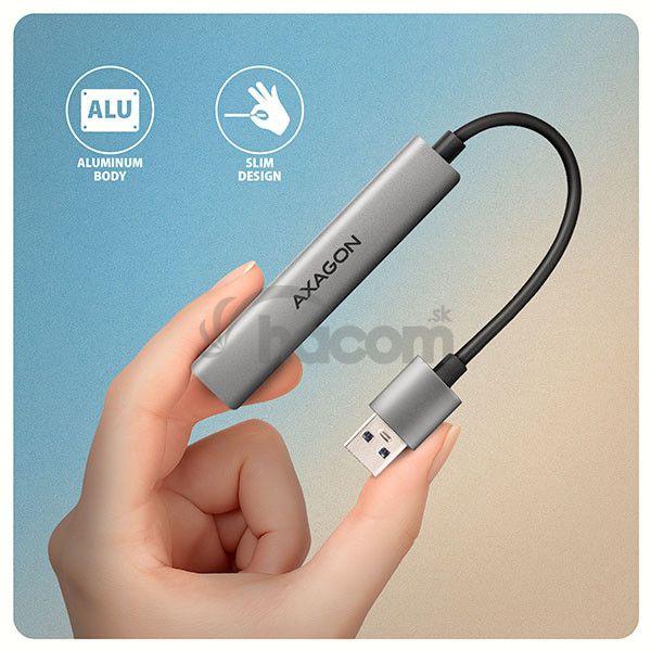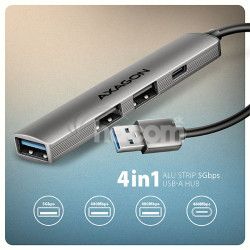 - AXAGON HUE-STA, 4x USB ALU STRIP húb, 1x USB-A 5Gbps, 2x USB-A & 1x USB-C 480Mbps, kábel USB-A 12cm HUE-STA