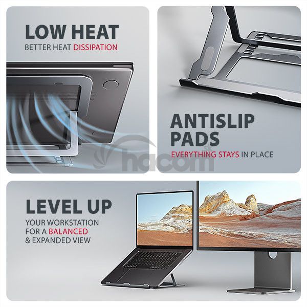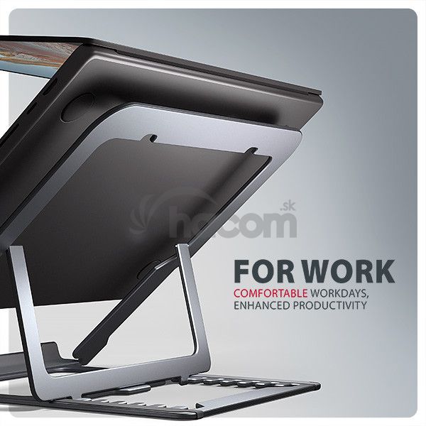 Stojan sa dá ľahko zložiť do kompaktných rozmerov , čo umožňuje pohodlné prenášanie kamkoľvek potrebujete. Jeho elegantný dizajn v šedej farbe nielen štýlovo doplní váš pracovný stôl, ale taktiež prináša praktické funkcie, ktoré oceníte pri každodennom používaní.