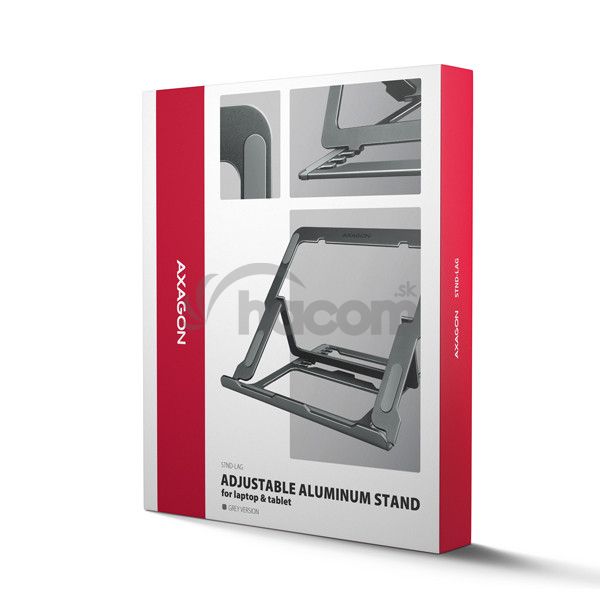 - AXAGON STND-LAG, hliníkový stojan pre notebooky 10"-17.3", nastaviteľná výška, sivý STND-LAG