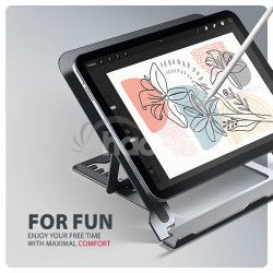 AXAGON STND-LAG je stojan na notebook alebo tablet, ktorý zaisťuje pohodlí a zlepšuje ergonomiu pri práci. Je ideálny pre zariadenia s uhlopriečkou od 10" do 17.3" a umožňuje nastavenie až ôsmich poloh . Ľahko tak nájdete ideálny sklon stojana pre maximálne uvolnenie vašich krčných a zádových svalov. Užite si komfortné pracovné prostredie s kompaktným a prenosným stojanom, ktorý sa dokonale prispôsobí vašim potrebám, či už pracujete doma, v kancelárii, alebo na cestách.Podstavec je vyrobený z hliníkových odliatok garantujúcich dlhú životnosť a spoľahlivosť. Vďaka protišmykovej úprave sa nemusíte obávať nežiaducich pohybov - vaše zariadenie zostane pevne na svojom mieste, a to bez poškodenia povrchu notebooku či podložky. Tieto starostlivo navrhnuté vlastnosti zaručujú perfektnú stabilitu pre váš notebook , tablet alebo dokonca obľúbenú knihu , čo vám poskytne izbu a pohodlí pri každodennom používaní.