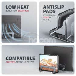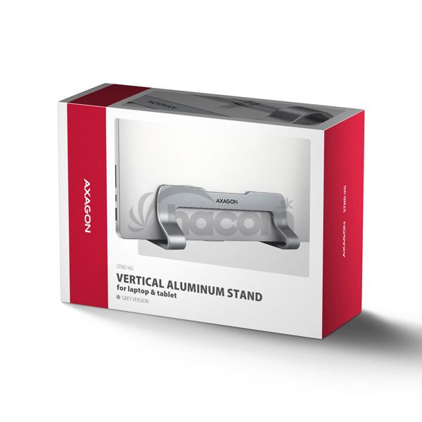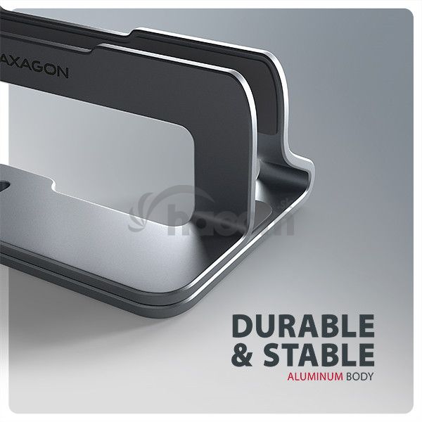 - AXAGON STND-VG, vertikálny hliníkový stojan pre notebooky 10"-17.3, nastaviteľný rozostup, sivý STND-VG
