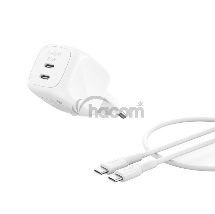 - BELKIN BOOSTCHARGE 50W 2 porty USB-C biely + 1m USB-C kábel WCH019kq1MWH-B6