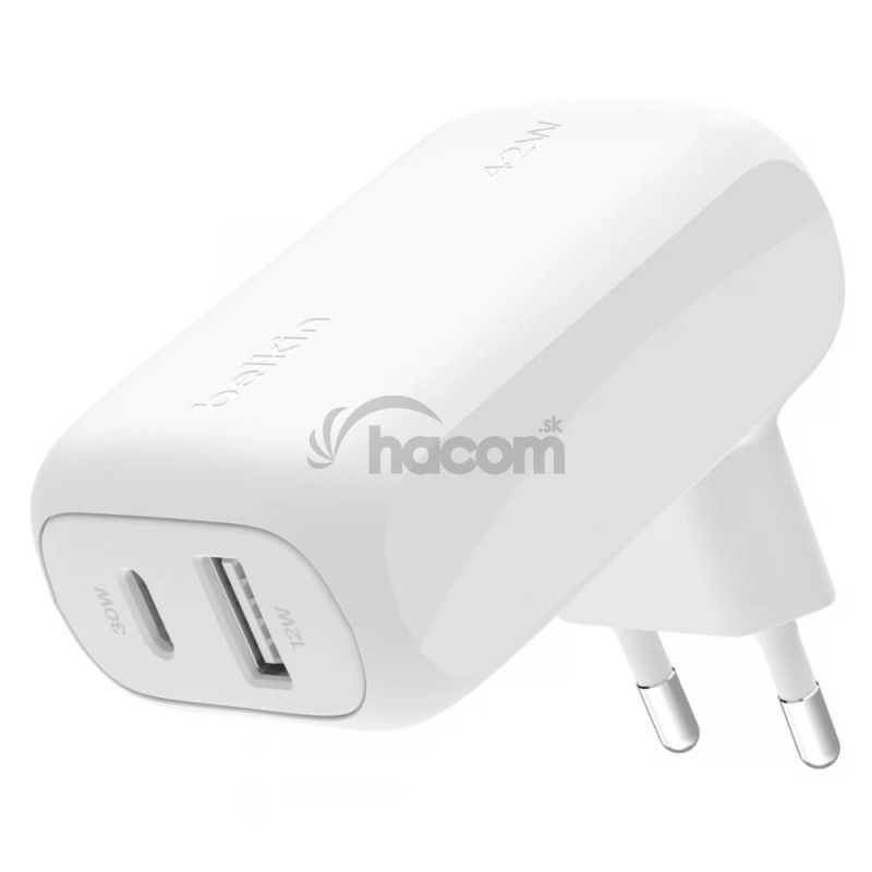 Belkin Charger 42W - 30W USB C + 12W USB-A Dual WCB009vfWH