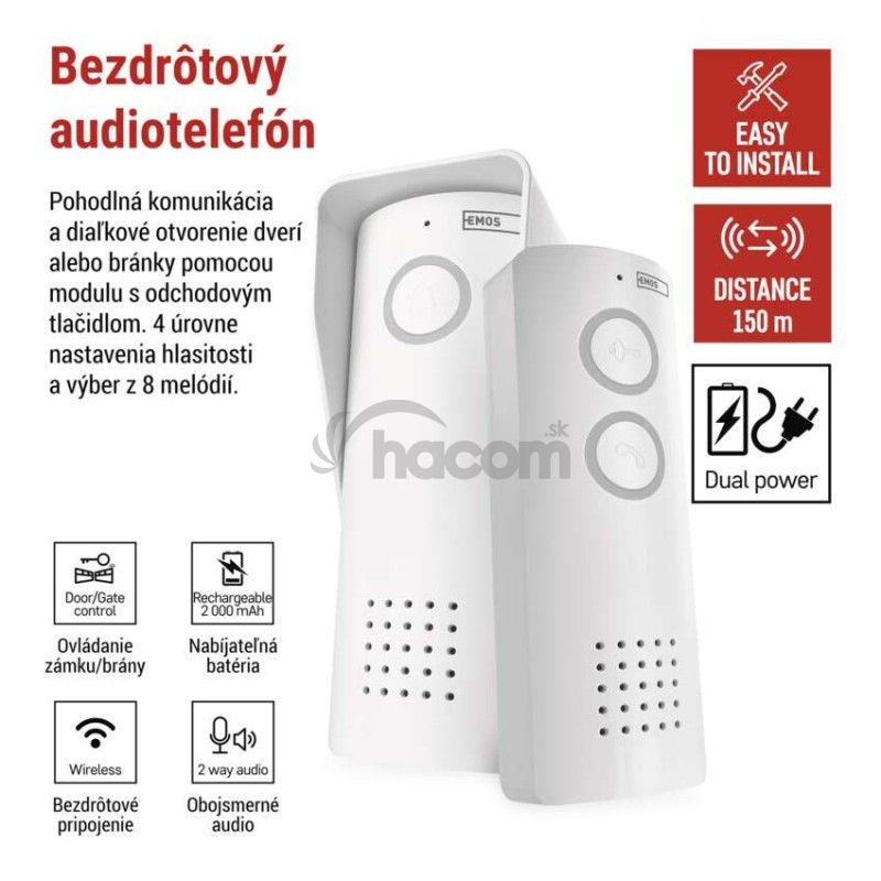- Bezdrôtová sada domáceho audio vrátnika H1087, 1 účastník H1087