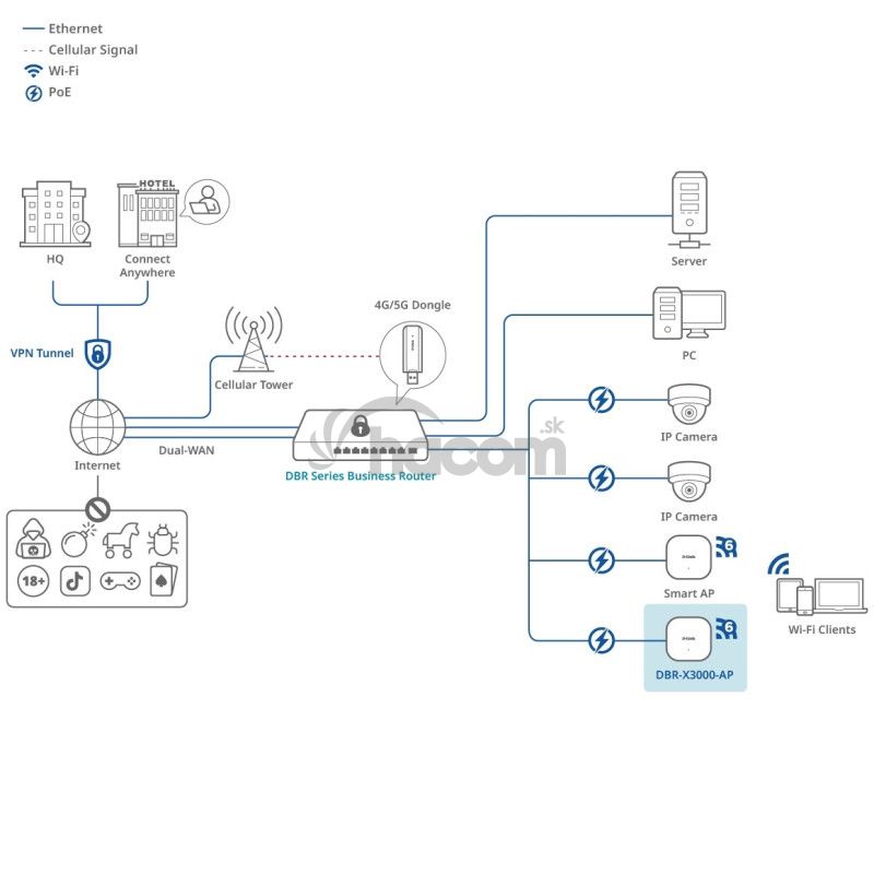 DBR-X3000-AP, navrhnutý tak, aby vyhovoval vyvíjajúcim sa potrebám moderných malých podnikov, kombinuje výkon, zabezpečenie a jednoduchú správu v jednom výkonnom zariadení.