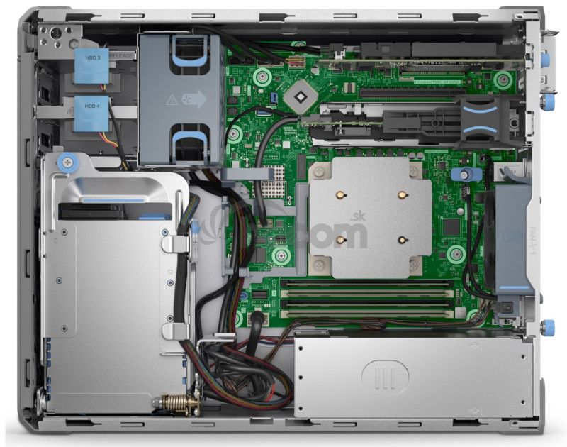 Celkom diskové pozície: 3x 3.5" Chassis with 3 Cabled HDD (SATA) a 2x 2.5" Cabled HDD (SATA) (bez podpory HotPlug a SAS)