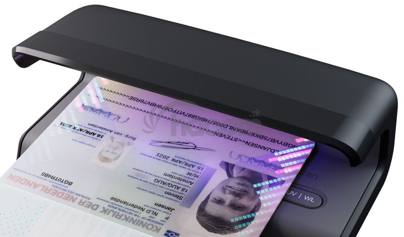 - Veľký priestor bieleho svetla na overenie vodoznaku, mikrotlače a kovového preužku