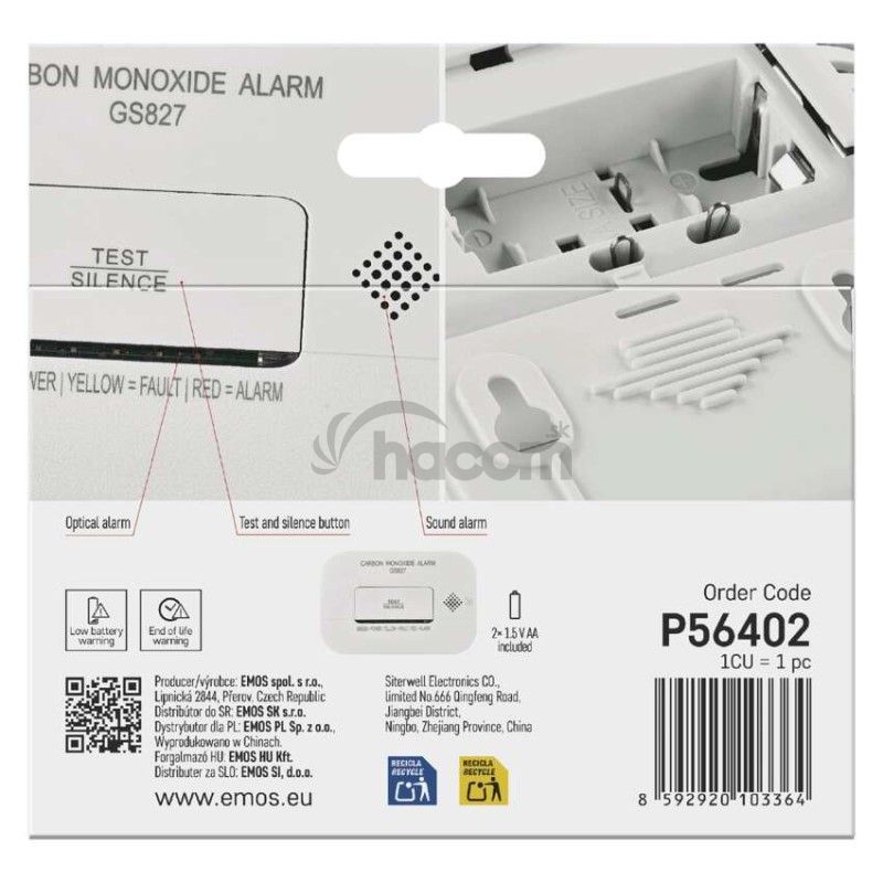 Recenzie Detektor oxidu uhoľnatého v miestnosti GS827 P56402