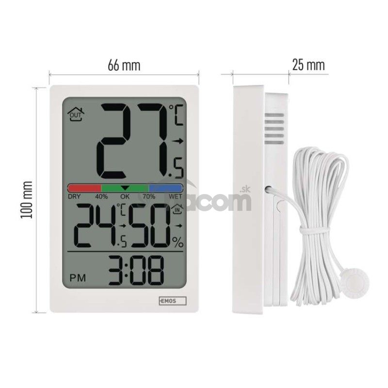 Digitálny teplomer s vlhkomerom, drôtový snímač, budík E0558P E0558P