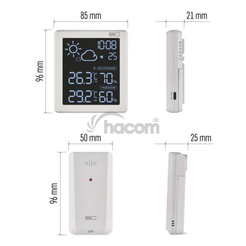 | vonkajšia teplota | -50 °C až +70 °C, rozlíšenie 0,1 °C |