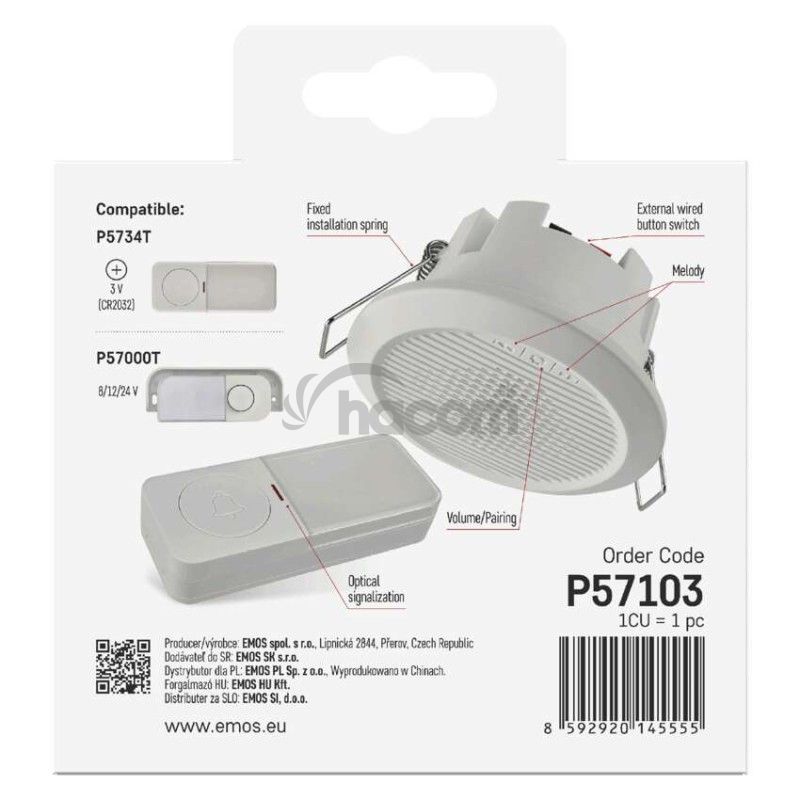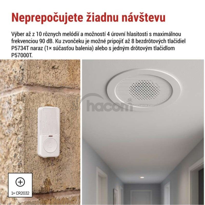 - Domový drôtový/bezdrôtový zvonček P57103, vstavaný P57103