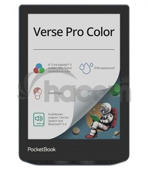 Veľká a farebná elektronická čítačka PocketBook 634K3Čítačka PocketBook 634K3 Verse Pro vám zabezpečí komfortné a kvalitné sledovanie širokého spektra obsahu – od beletrie a učebníc až po mangu alebo komiksy. Všetok obsah na čítačke je skvele čitateľný vďaka 6-palcovému displeju s farebnou obrazovkou E Ink Kaleido™ 3, ktorá dokáže zobraziť 4 096 farieb, ale zároveň chráni zrak pred oslnením. Elektronická čítačka PocketBook skvele padne do ruky, preto ju môžete používať kdekoľvek a kedykoľvek budete chcieť. Zariadenie podporuje 25 knižných a grafických formátov a navyše ešte ponúka podporu 6 zvukových formátov. Čítačka obsahuje funkcie prevodu textu na reč, Bluetooth pripojenie či podporu Wi-Fi či cloudového pripojenia. Norma ochrany IPX8 zaisťuje odolnosť proti vode pri ponorení do sladkej vody až do hĺbky 2 metrov po dobu 60 minút. Barevná verzia Stormy Sea sa navyše pýši štýlovým tmavomodrým prevedením, ktoré působí elegantne a moderne.