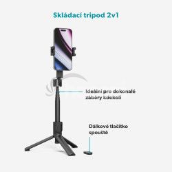 Skladací statív 2v1 pre dokonalé zábery kdekoľvekEpico Tripod Mag+ 2v1 spája funkciu selfie tyče a statívu v jednom kompaktnom riešení – vhodnom pre skupinové fotografie, časozberné snímky s dlhou expozíciou alebo natáčanie obsahu. Plne rozložený dosahuje dĺžku 98 cm a poskytuje ideálnu vzdialenosť pre každú scénu, pričom po zložení meria iba 20 cm – ľahko sa tak zmestí do každej tašky. Vďaka flexibilnému polohovaniu je možné telefón otáčať o 360 ° a nakláňať v rozsahu 270 °, takže si vždy nastavíte uhol presne podľa vašich potrieb.