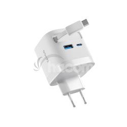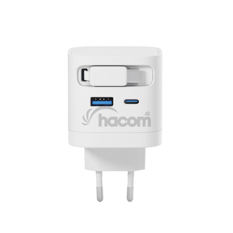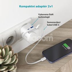 Vstavaný USB-C kábel, port USB-C a USB-A umožňujú nabíjať až tri zariadenia zároveň. Technológia GaN zaisťuje vysokú účinnosť a menšie zahrievanie pre pohodlné každodenné používanie. Vďaka kompaktnému a ľahkému dizajnu sa skvele hodí na cesty, do kancelárie aj na domáce použitie. O bezpečnosť sa starajú vstavané bezpečnostné prvky, ktoré chránia proti skratu, prepätiu, preťaženiu a prehriatiu, takže máte vždy istotu bezrizikového nabíjania