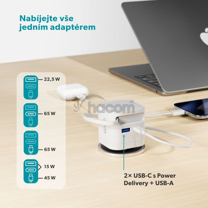 - Epico UltraBoost Retractable GaN 65W adaptér EA65c so zabudovaným káblom 9915101100230