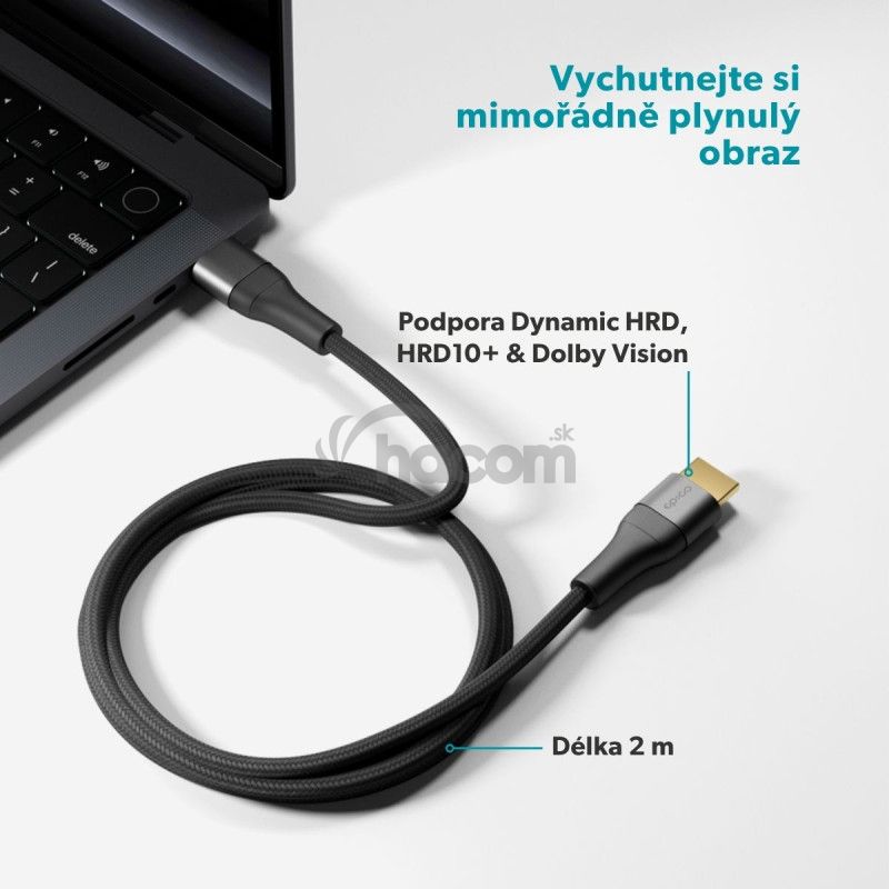 Šírka pásma 48 Gb/s zaručuje extrémne rýchly a stabilný prenos bez zpoždenia, takže či už sledujete filmy, hráte hry alebo streamujete dátovo náročný obsah, tento kábel si s tím bez problémov poradí. Odolný opletený povrch a hliníkové konektory predlžujú životnosť a zachovávajú bezchybný výkon aj po dlhodobom používaní. Dvojmetrová dĺžka ponúka velkorysý dosah zapojenia bez straty signálu, zatiaľ čo praktické poutko na suchý zips udrží kábel vždy úhľadne stočený a pripravený kedykoľvek na použitie.