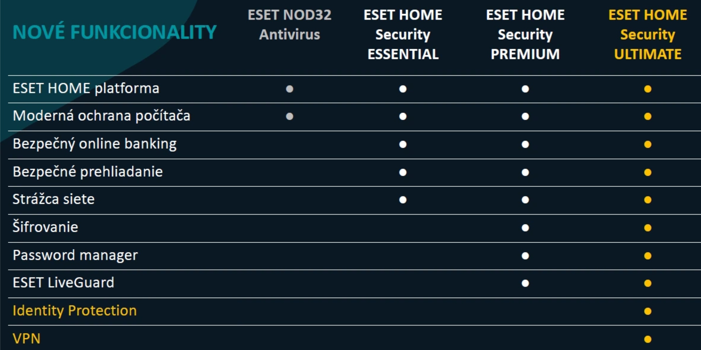 ESET HOME Security Ultimate prináša špičkovú ochranu súkromia a zariadení pre bezstarostný digitálny život. Chráňte svoje sieťové pripojenie a anonymizujte si IP adresu pomocou ESET VPN. Jednoducho spravujte heslá, šifrujte údaje či bezstarostne nakupujte. Vďaka funkciám, ako je