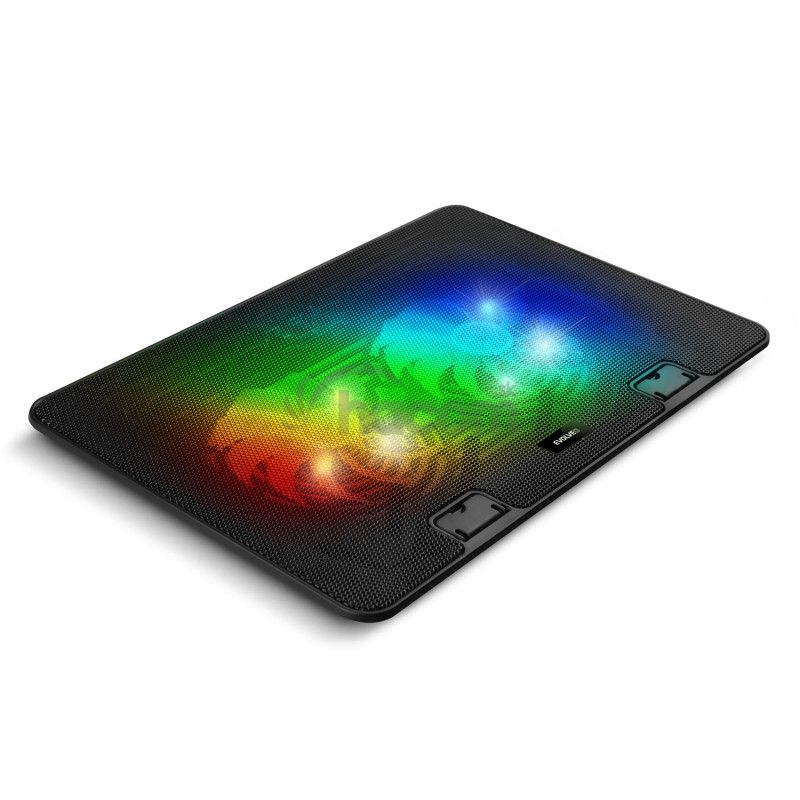 Podstavec je vybavený dvoma 125mm ventilátormi , ktoré zaisťujú rovnomerný odvod prebytočného tepla. Či už sa tak venujete RPG hrám, FPS akciám, alebo online hraniu, ktoré dáva vášmu počítaču pekne zabrať, nemusíte sa obávať poklesu výkonu – podložka udrží váš notebook chladný aj pri dlhom hernom maratóne. Ventilátory sú tiež vybavené 8000 ventilačnými otvormi s priemerom 2 mm (pre optimálny prietok vzduchu) a navrch doplnené pôsobivým RGB osvetlením , ktoré hrá všetkými farbami a štýlovo dokresľuje gamingovú atmosféru.
