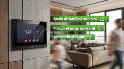 Rozhranie je prehľadné a intuitívne – na prvý pohľad vidíte prichádzajúci hovor, históriu návštev a ďalšie informácie, napríklad aktuálne počasie . Pridanie nového užívateľa, zmena prístupových práv alebo správa RFID kariet prebieha priamo na displeji v priebehu niekoľkých krokov, bez zložitej konfigurácie. V praxi to znamená, že keď príde na víkend rodina, počas chvíle vytvoríte dočasný prístup. Pokiaľ niekto stratí prístupový čip, jednoducho ho v systéme zablokujete a nahradíte novým – rýchlo, bez zásahu do dverí alebo zámku.
