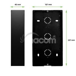 Vonkajší panel je možné inštalovať dvoma spôsobmi podľa typu objektu. Pre čisté zapustené riešenie je k dispozícii podomietková montáž s priloženou inštalačnou plastovou škatuľou , ktorá umožňuje elegantnú integráciu do fasády. Ak preferujete jednoduchšiu inštaláciu bez kosenia, je možné využiť prisadenú montáž pomocou montážneho boxu MSB, ktorý je ideálny napríklad pri dodatočnej inštalácii na hotovú stenu alebo plotový stĺpik.