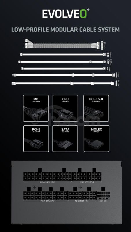 - EVOLVEO G1000 PCIe 5.0, zdroj 1000 W, ATX 3.0, 80+ EG1000R