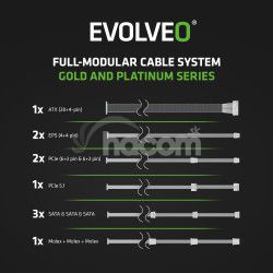 EVOLVEO G1000 PCIe 5.0, zdroj 1000W, ATX 3.0, 80+ GOLD, 90% účinnosť, aPFC, 140mm ventilátor, retail