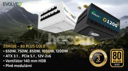 - EVOLVEO G850,850W,ATX 3.1,14cm,aPFC,80+GOLD,3YRW G850-BK