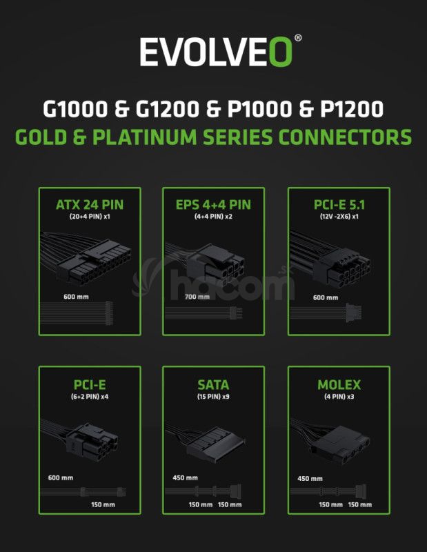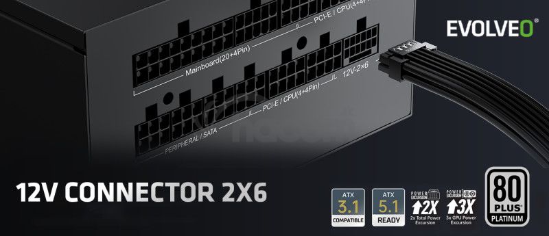 - EVOLVEO P1200, 1200W/ ATX 3.1/ 80+ PLATINUM/ P1200-BK