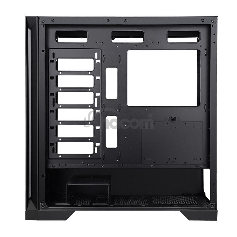 Hneď na prvý pohľad vás táto PC skriňa zaujme štýlovým priehľadným prevedením . Čelný panel aj bočnice sú vyrobené z temperovaného skla , takže pri pohľade na počítač môžete obdivovať svetelnú show RGB ventilátorov alebo sa na vlastné oči presvedčiť, že hardvér šliape ako švajčiarske hodinky. Použité bezpečnostné sklo o hrúbke 4 mm má navyše aj ďalšiu výhodu – keby nedajbože došlo k nehode, nezasype vás ostrými črepmi, ale rozpadne sa na neškodné drobné kúsky.