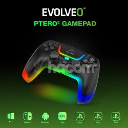 - EVOLVEO Ptero2, bezdrôtový & drátový gamepad pre PC, PS3/4/5, iOS, Android, Switch, čierny PTERO2-BK