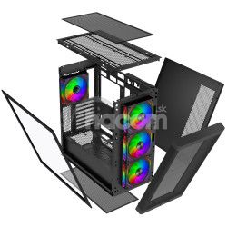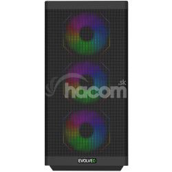 EVOLVEO Scorpio, skriňa eATX/ATX, 4x ARGB ventilátor 120mm, bočný panel temperované sklo + mriežkovaný predný panel