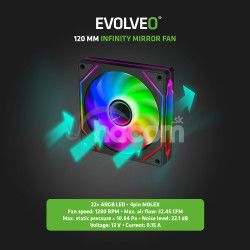Táto PC skriňa je sídlom nielen pre váš hardvér, ale aj pre štvoricu ventilátorov Infinity Mirror . Tie sú strategicky rozmiestnené a perfektne vyzbrojené na boj proti prehrievaniu počítača, avšak ako je pri EVOLVEO Scorpio-BK-4 dobrým zvykom, dbajú aj na eleganciu. Zdobia ich Multi ARGB podsvietenie s 22 LED diódami (8 uprostred a 14 na vonkajšom obvode každého ventilátora), doplnené o pôsobivý zrcadlový dizajn . Vďaka sústave zrkadiel sa svetlo odráža a znásobuje, až sa vám zdá, že v PC skrini svietia stovky žiaroviek. Ide o naozaj úchvatný efekt, ktorý dáva hernej atmosfére tú pravú šťavu.