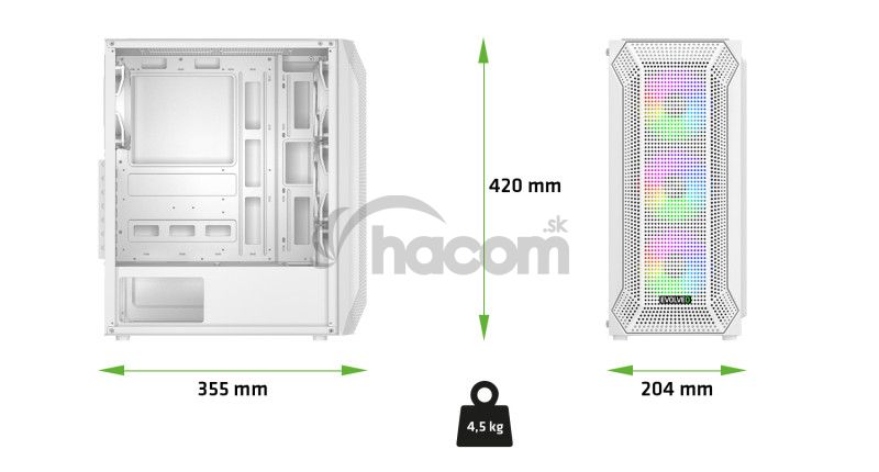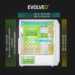 - EVOLVEO Xenon, Midi Tower / 4x ARGB / mesh + sklo XENON-WH-4