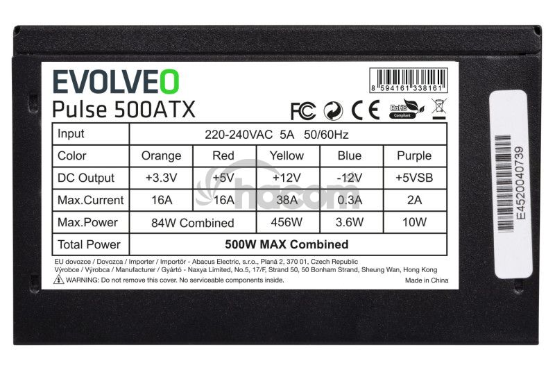 - EVOLVEO zdroj 500W ATX, tichý, bulk EP500PP12B